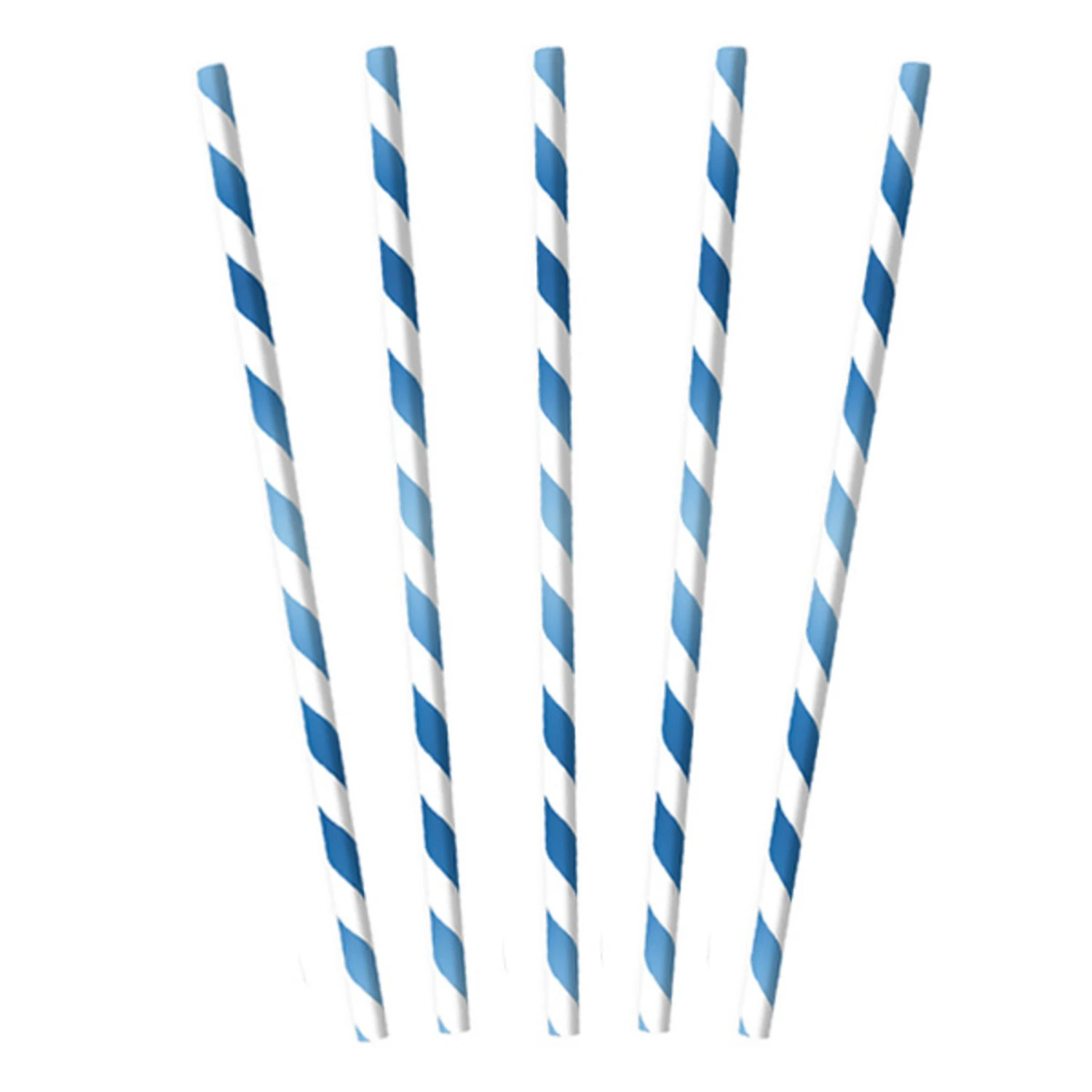 Deze gestreepte rietjes zijn ideaal voor je volgende feest. De papieren rietjes hebben meerdere tinten blauw met witte strepen. Ook leuk voor de geboorte van een zoon of een babyshower.