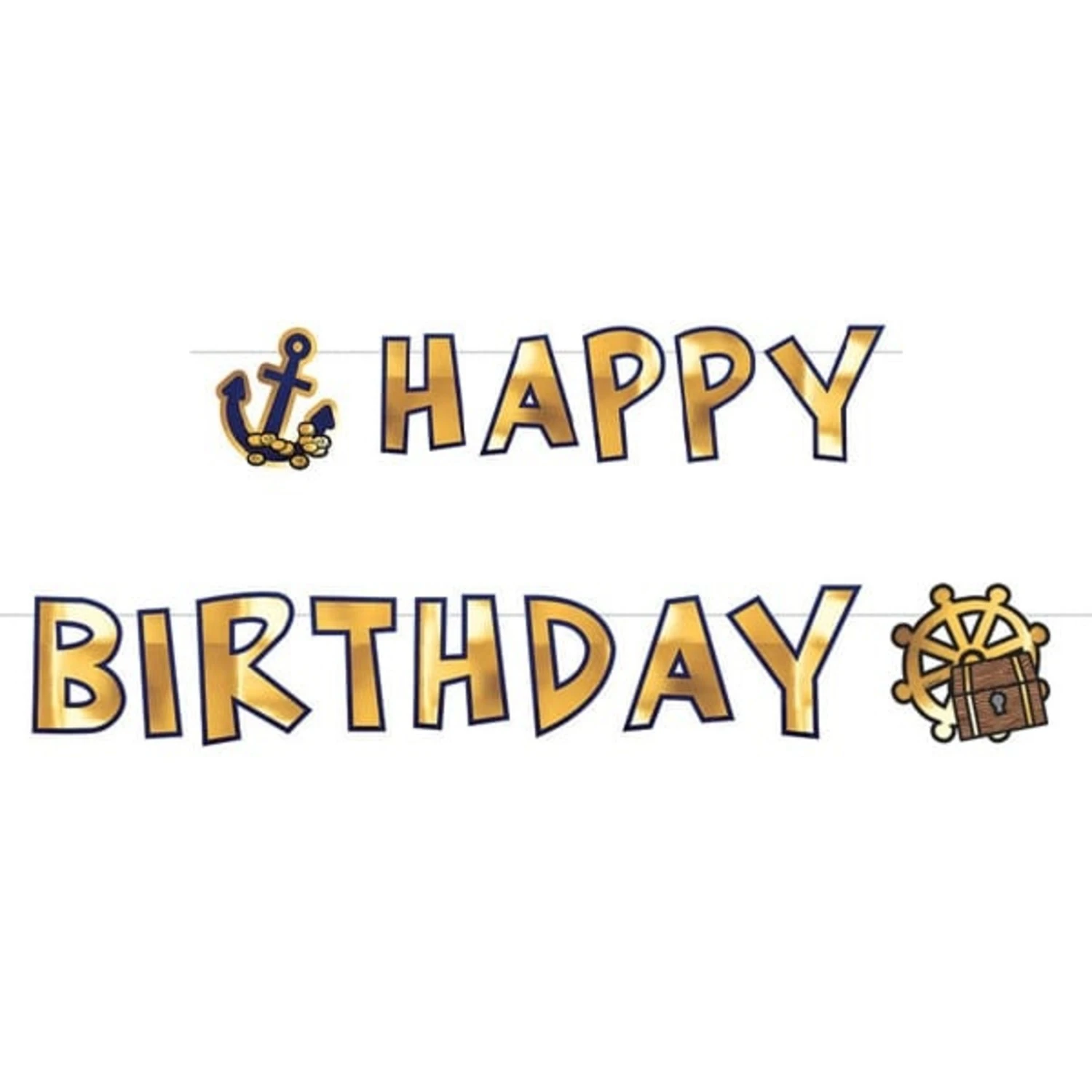 Happy Birthday piraatje! De jongste veras je met een echte piraten letterslinger die hem of haar ook nog een happy birthday wenst. Wat wil je nog meer? Deze glanzende gouden slinger zorgt voor een echt piraten sfeertje op jou verjaardag of kinderfeestje.