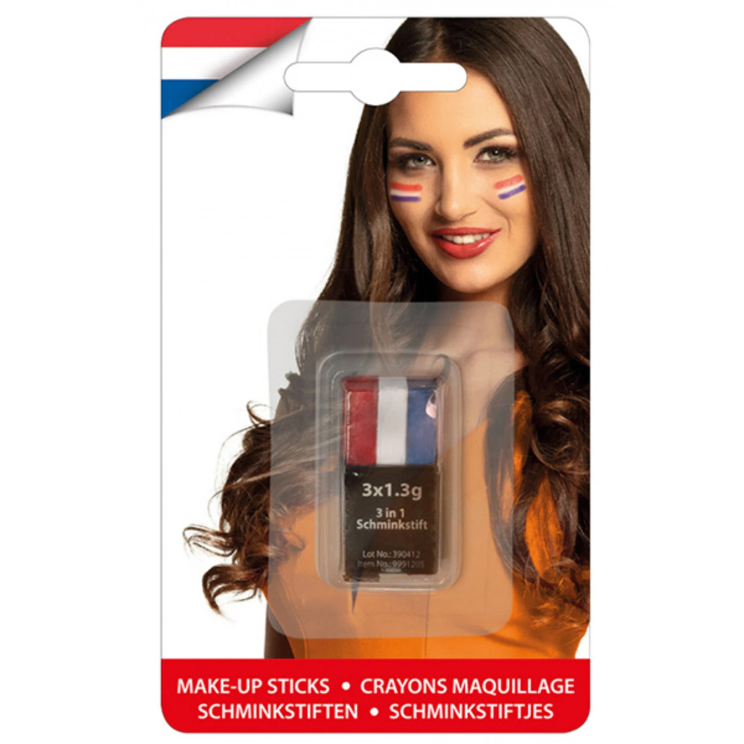 Met een make-up stick ben je helemaal klaar voor een voetbalwedstrijd, nationale feestdag of een ander sportevenement! Je kleurt je wangen eenvoudig rood, wit en blauw met deze handige stick.