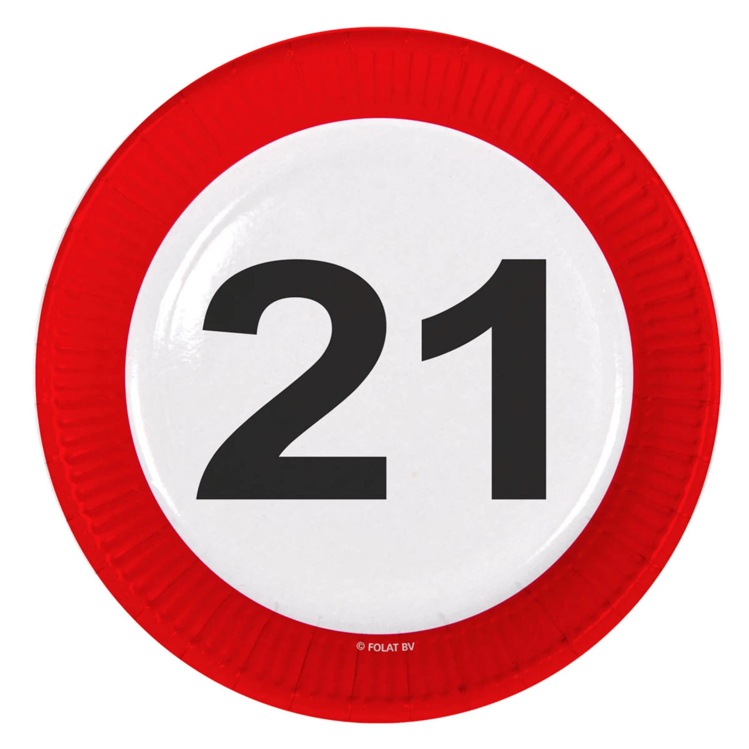 Folat Feestbordjes 21 Jaar Verkeersbord 23CM (8ST)