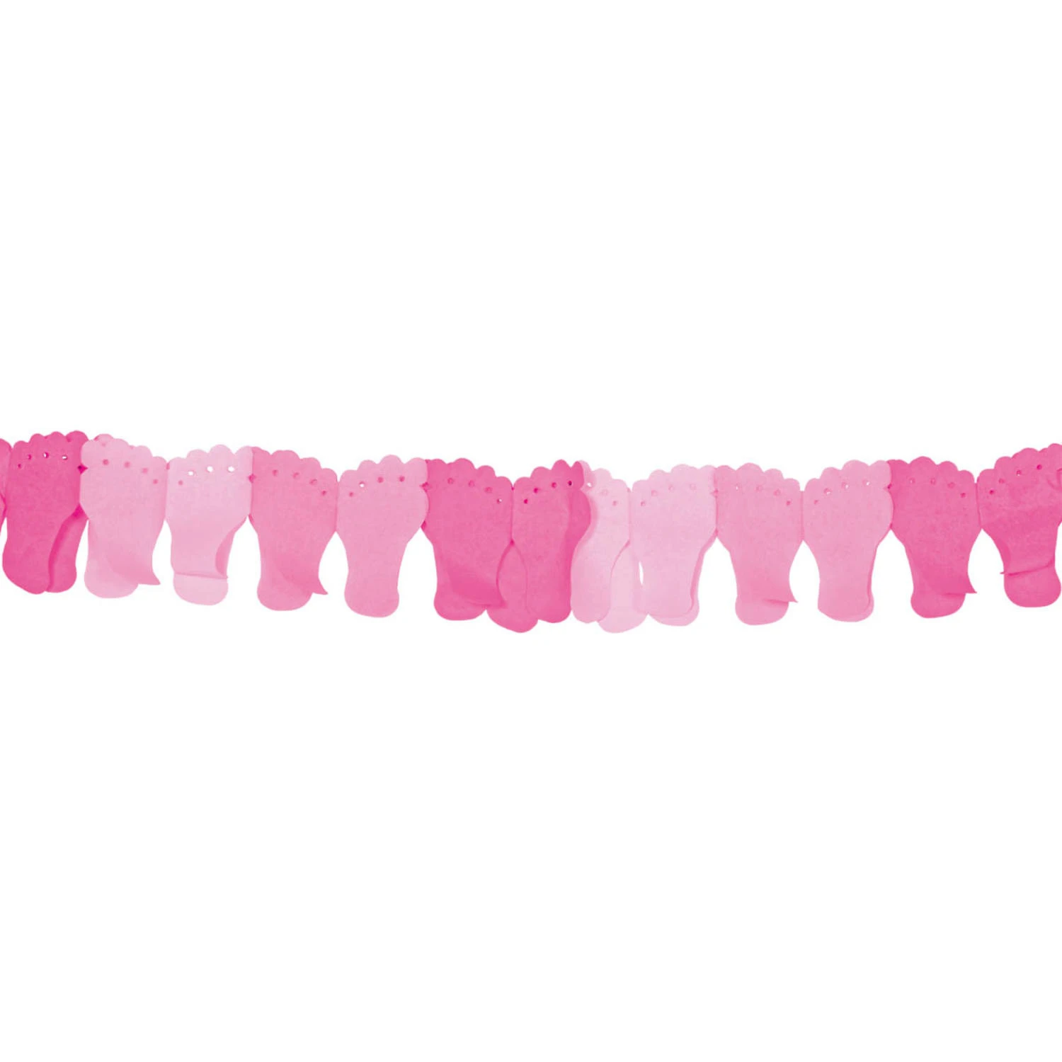 Op zoek naar een originele slinger om de geboorte van een meisje te vieren? Dan kies je voor deze roze slinger van papier die bestaat uit babyvoetjes in drie verschillende tinten roze. Schattig en origineel!