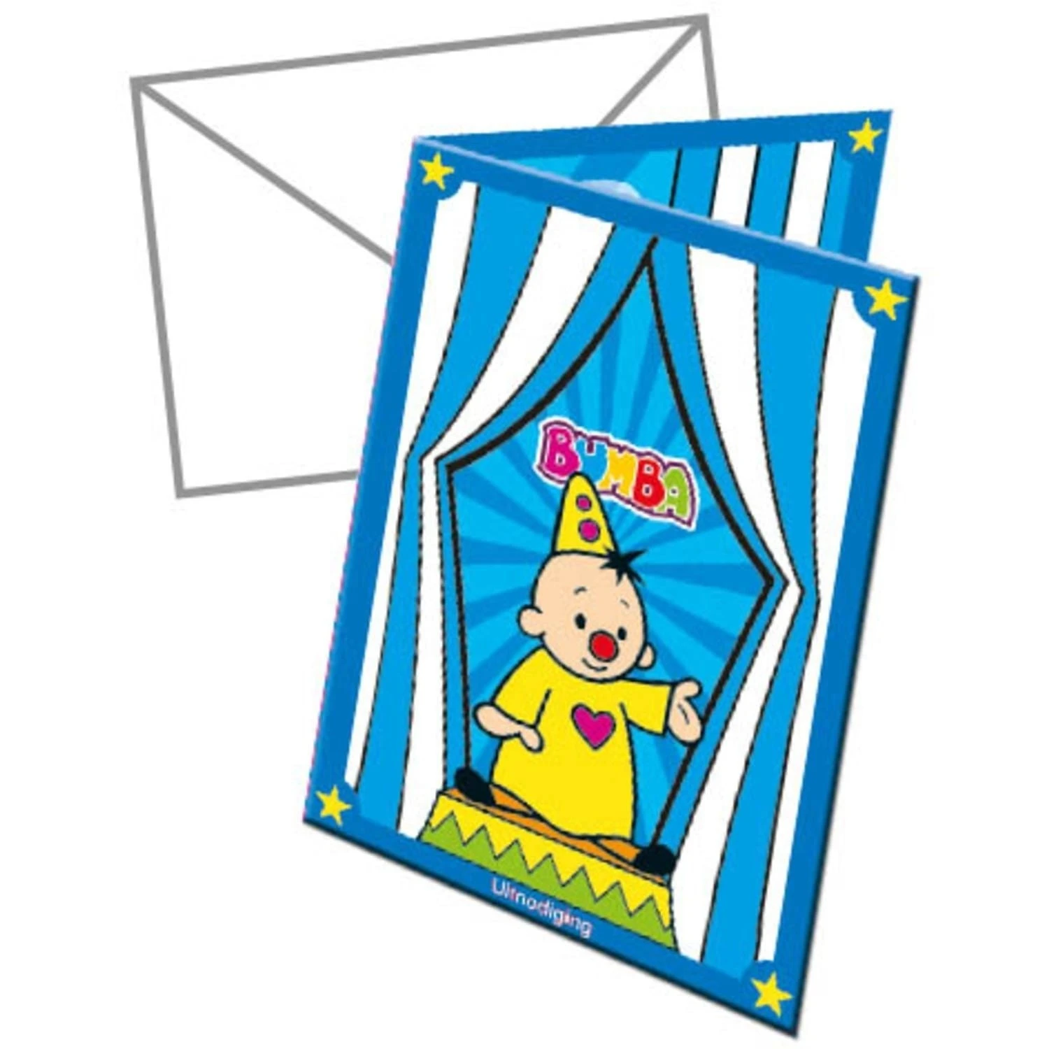 Vraag iedereen om op jou kinderfeestje te komen via een uitnodiging van Bumba? De uitnodigingen van Bumba zullen een glimlach toveren op de uitgenodigde gasten. Je ontvangt 8 uitnodigingen van Bumba, met ook 8 witte enveloppen om ze in te versturen.