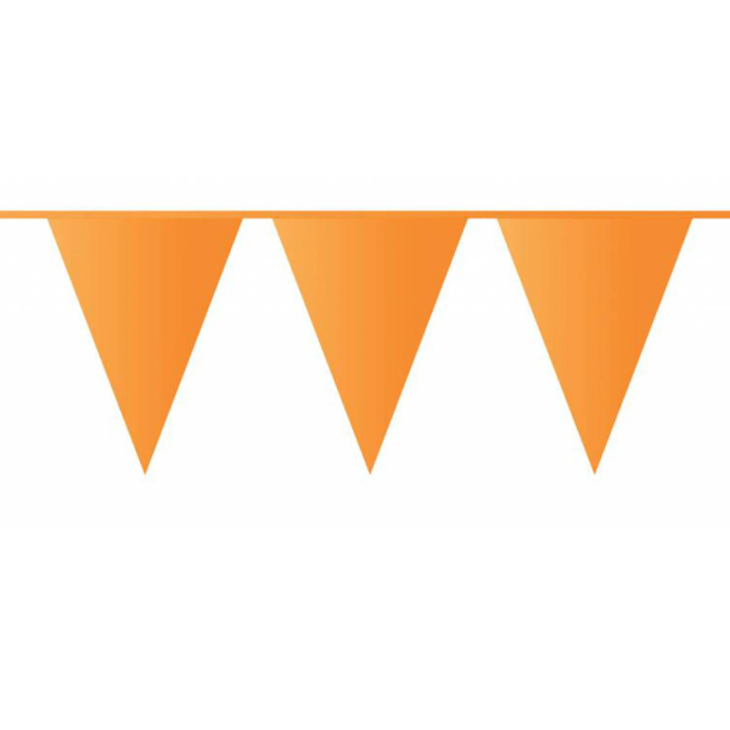 Vier Koningsdag of het WK & EK in stijl met oranje versiering! Met een oranje vlaggenlijn of slinger maak jij je oranje versiering helemaal af. De oranje vlaggenlijn heeft 15 vlaggetjes en is 10 meter lang.