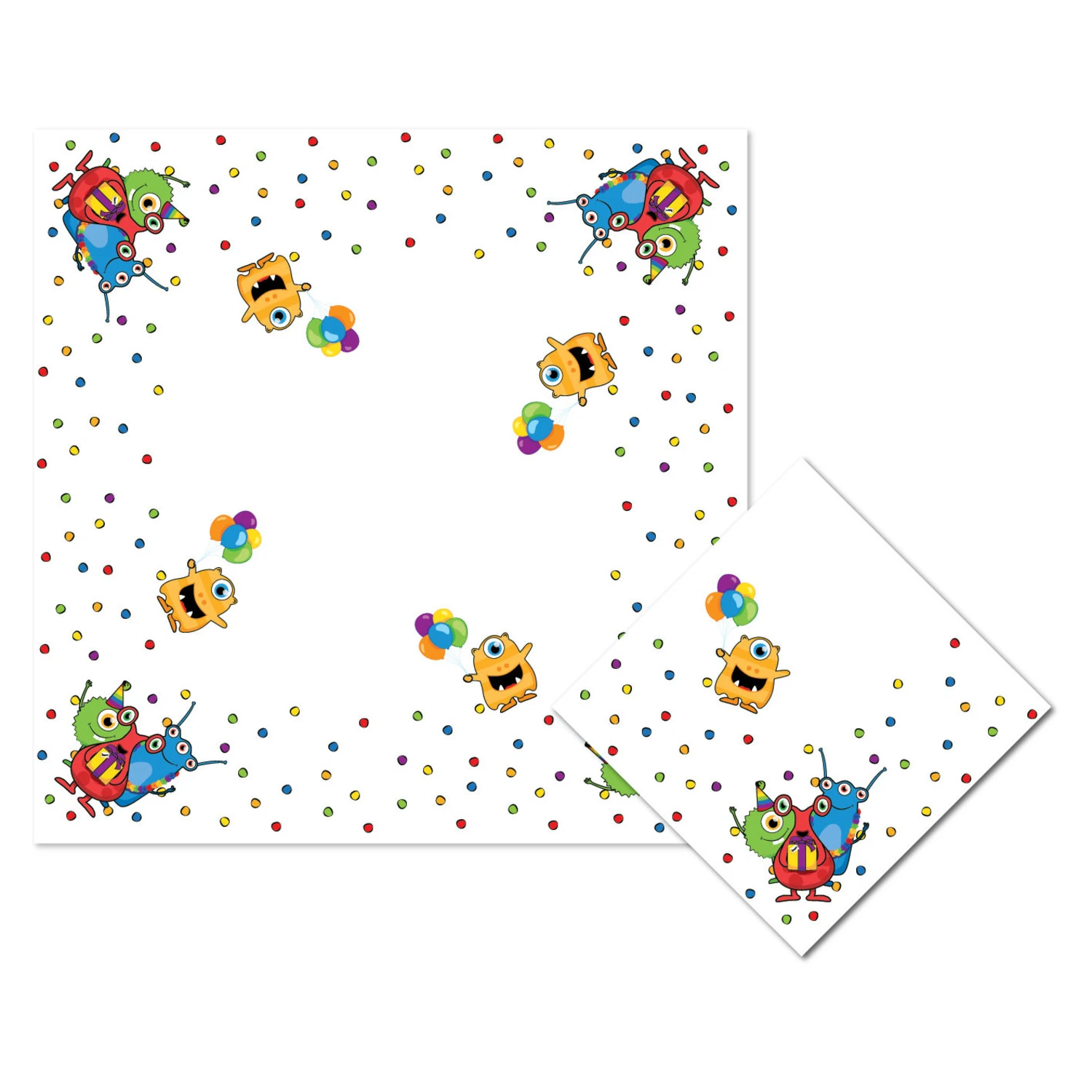 Vrolijke servetten met monsters zijn perfect voor een Monster Party voor jonge kids! De vier gekleurde monsters staan tussen confetti op de servetten, terwijl er eentje wegvliegt met de ballonnen.