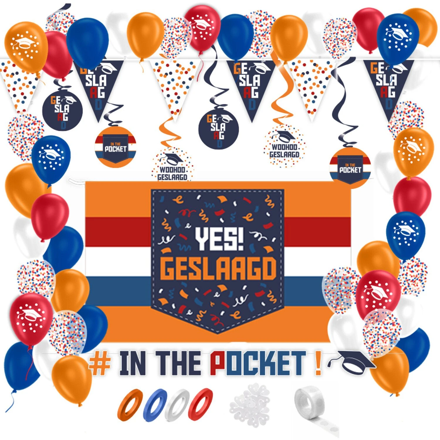 Party Love NL Partylove® Geslaagd Versiering Feestpakket In The Pocket! 52 Stuks
