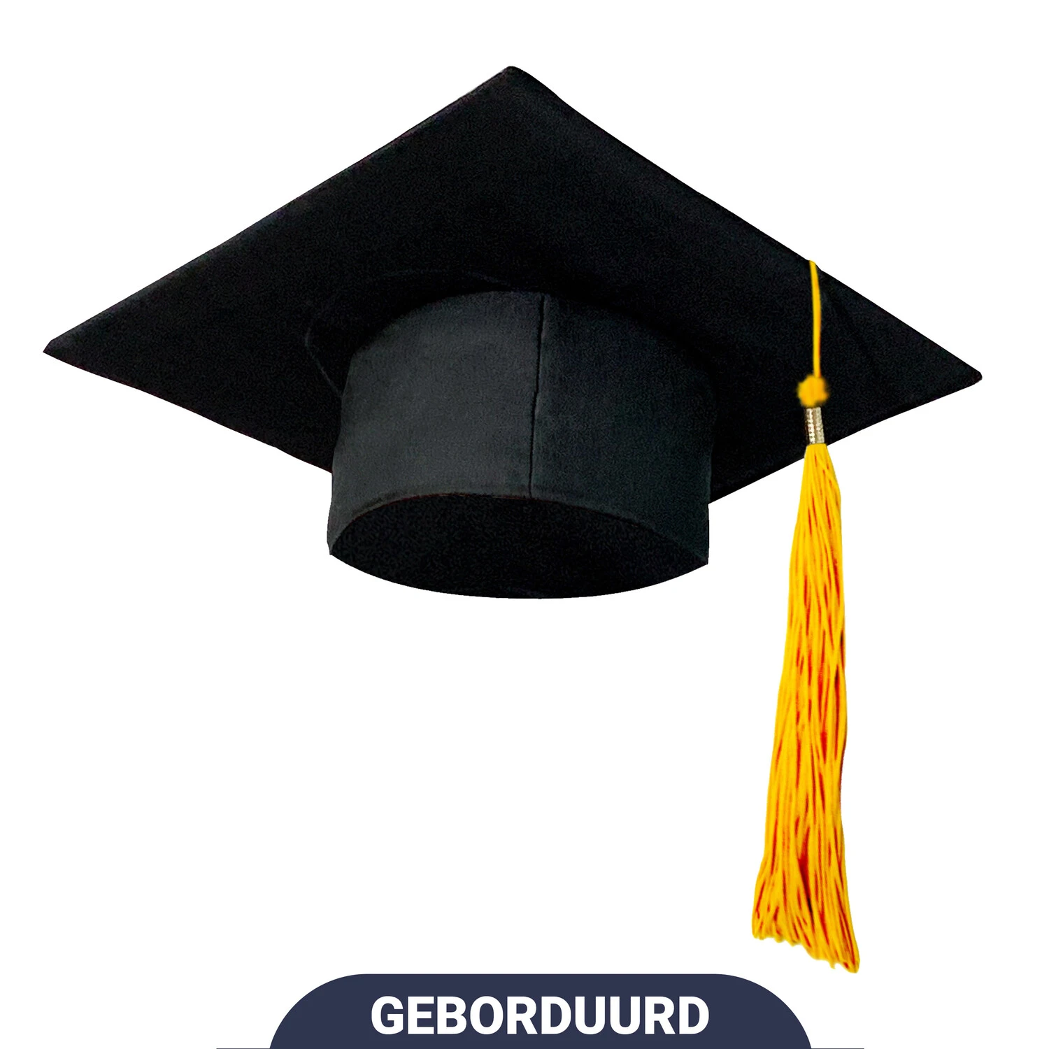 Laat jouw studenten het welbekende beeld vormen, waar alle hoedjes de lucht in gaan op de afsluiting van de diploma uitreiking met onze afstudeerhoedjes die bedrukt zijn als herinnering met jullie school logo!